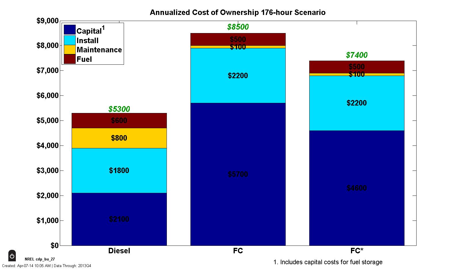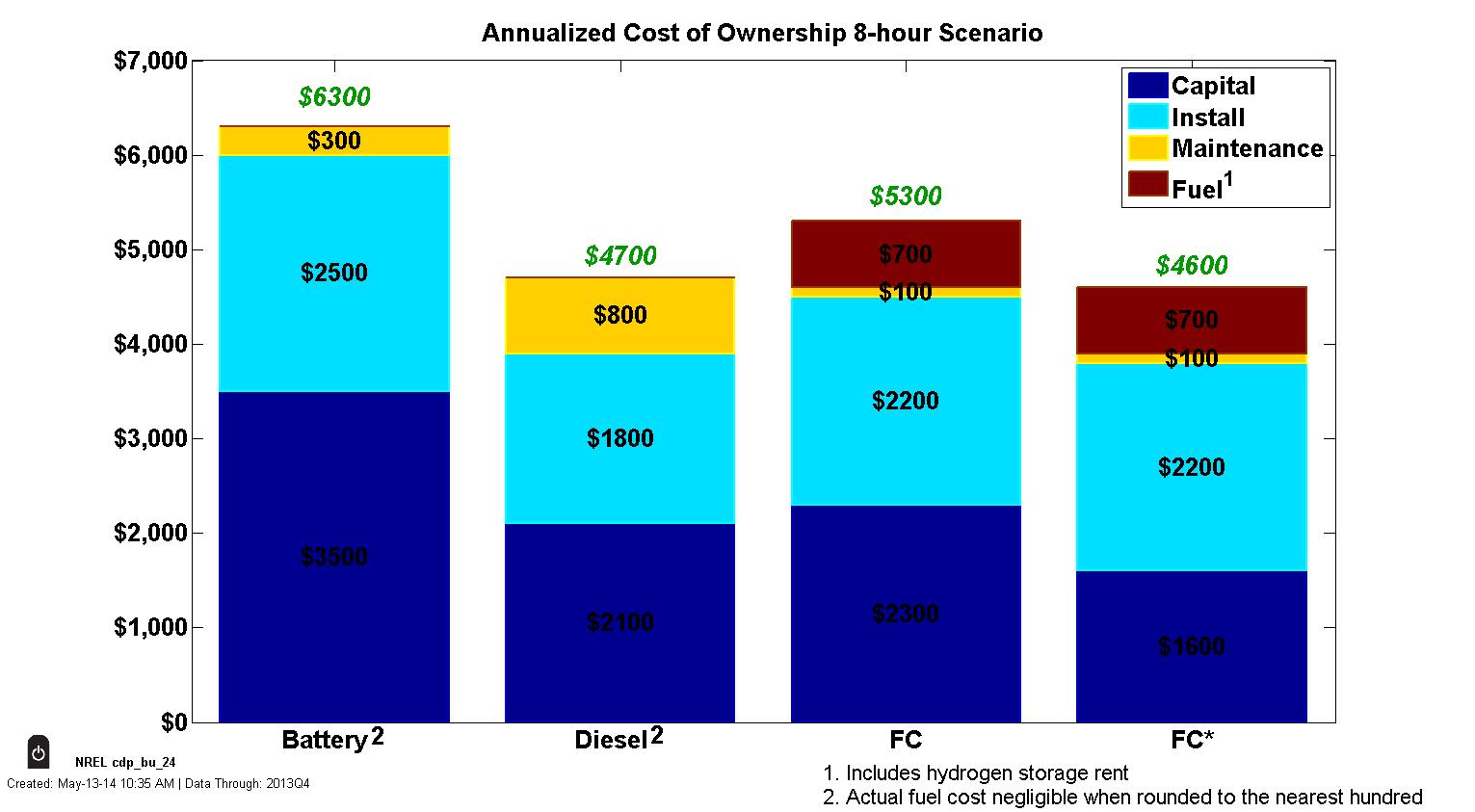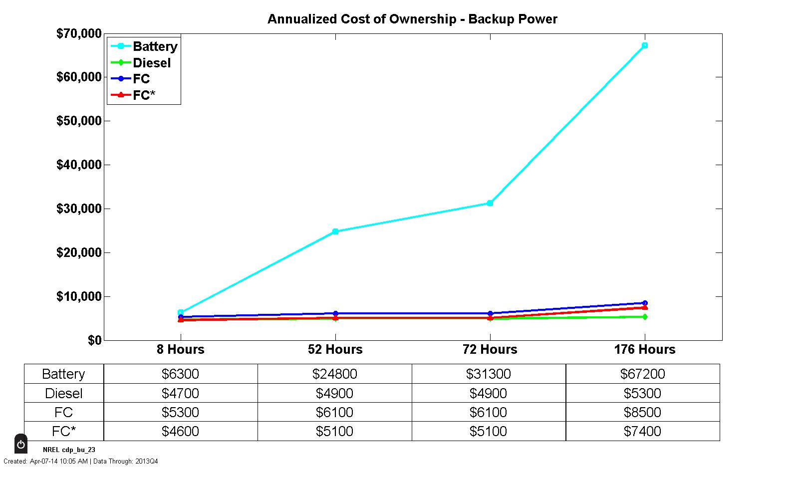 Annualized Cost Breakdown for Three Backup Power Technologies, CDP BU 28, 4/7/2014