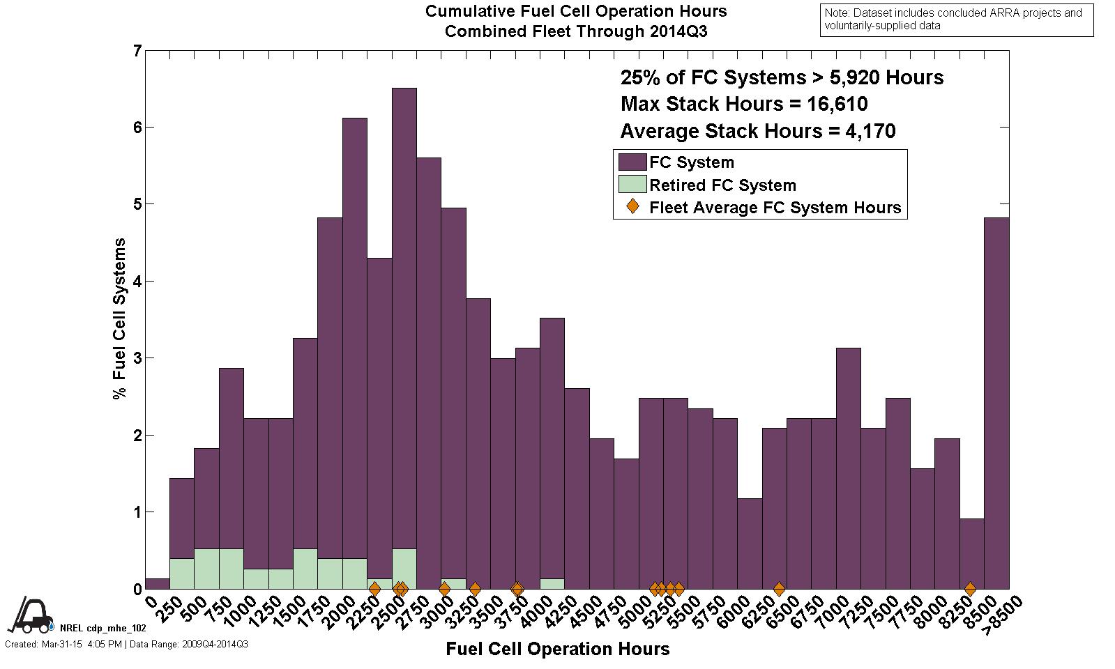 Fuel Cell System Operation Hours, CDP MHE 102, 3/31/2015
