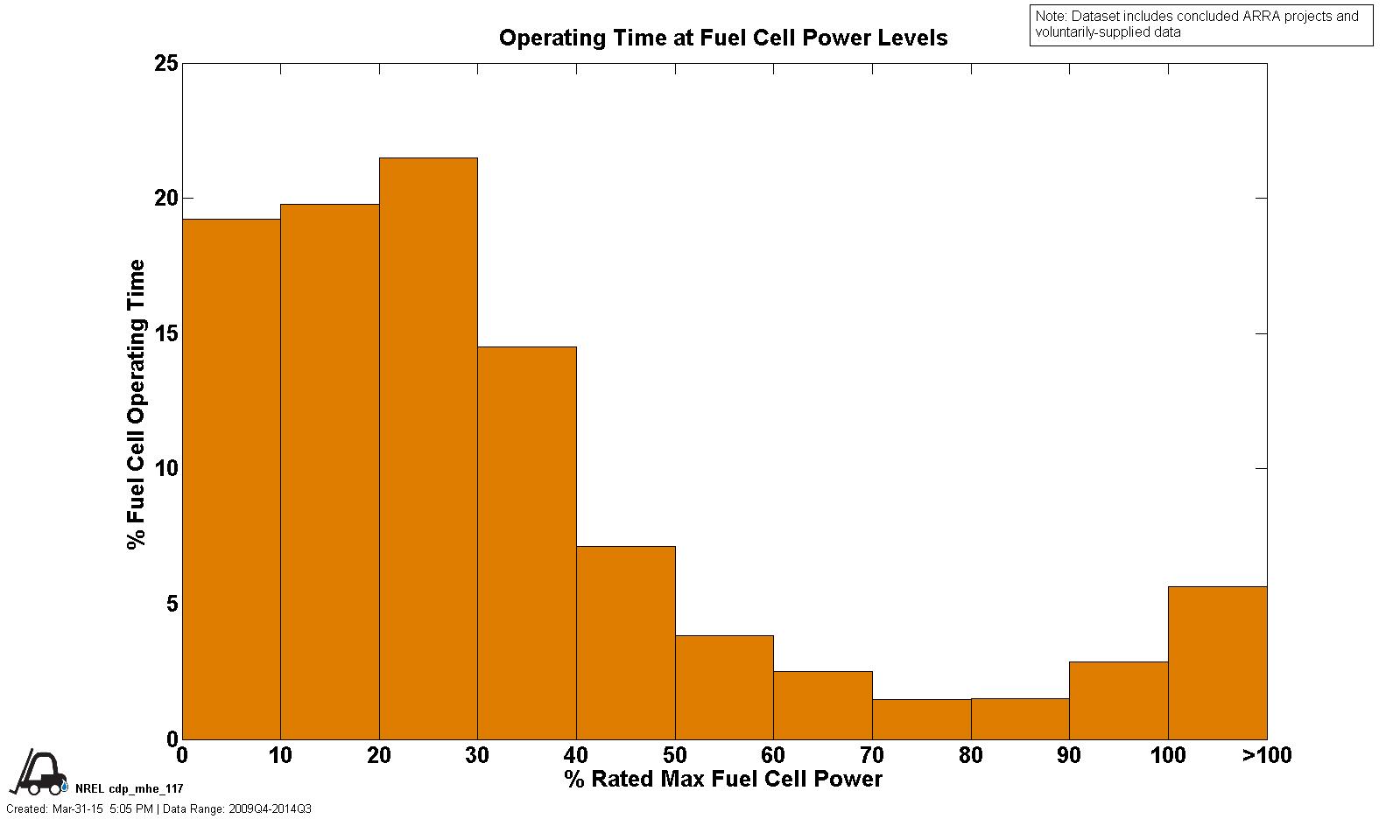 Operating Time at Fuel Cell Power Levels, CDP MHE 117, 3/31/2015