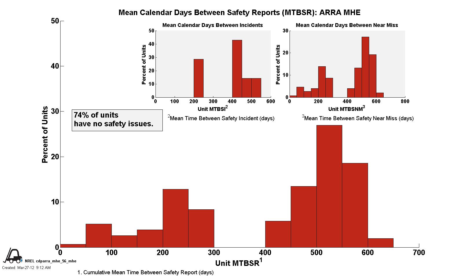 MHE Mean Time Between Safety Reports, CDP ARRA MHE 56, 3/27/2012