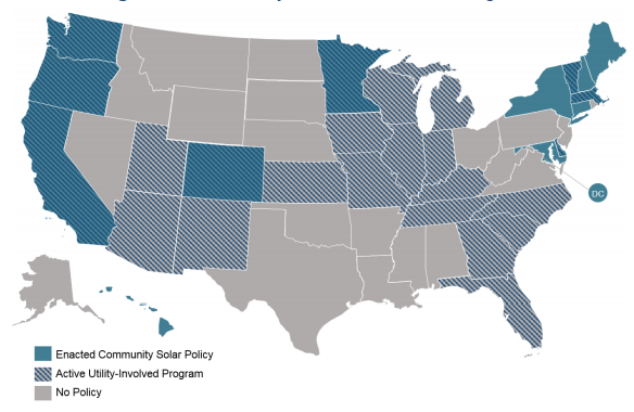 [ii] Most states have adopted or authorized community solar programs by enacting new community solar-related laws, while New York adopted its program via regulation. See: http://www.nyserda.ny.gov/All-Programs/Programs/NY-Sun/Communities/Shared-Solar.