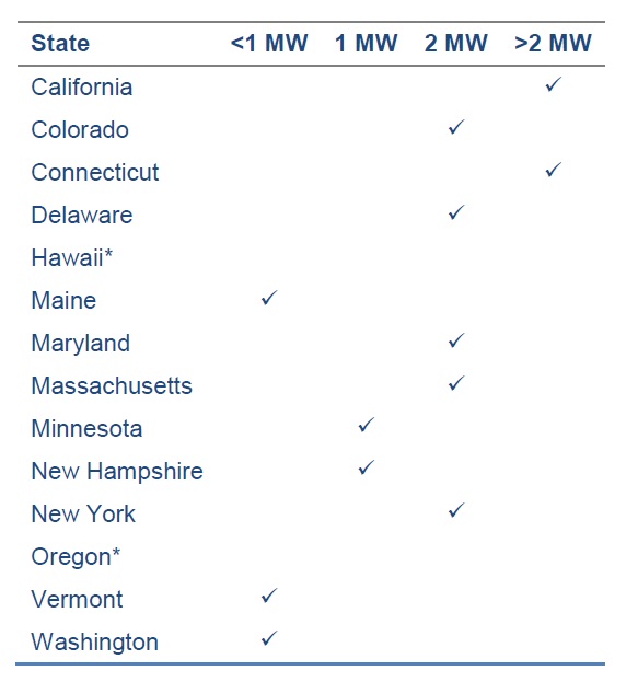 *Individual project size limits have not yet been established in Oregon or Hawaii.
